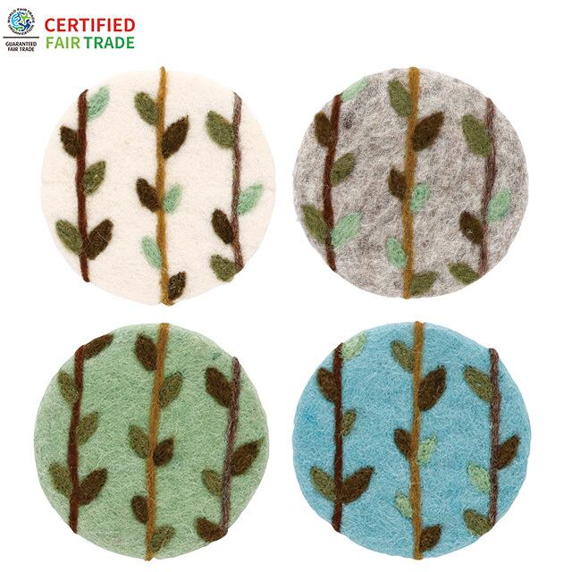 ネパール フェルト雑貨 リーフコースター コースター コースター おしゃれ インテリア セット 4枚 ネパール ハンドメイド フェアトレード ギフト プレゼント フェルト ウール100% | 520nail 健康美容雑貨専門店