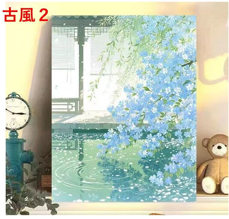24.古風 数字油絵 小さい 塗り絵 パズル塗り絵 数字キット塗り絵 DIY diy デジタル油絵 手芸キット 水海 絵画 絵具付 数字絵 大人の塗り絵 油絵 ペイントバイナンバー 推し 推し活 趣味 30x40cm フレームなし 花 風景 数字アート | 520nail 健康美容雑貨専門店