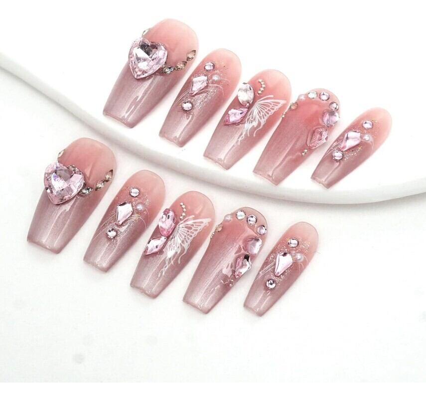 手づくりネイル:プロのネイリストが手作業で丁寧に作っています。ベースラッカー、ジェル先端、カラージェル、複雑なデザイン、ラッカーなど、完全なサロンジェルネイルプロセスに従って、爪が自然に見え、丈夫に見えるようにします
