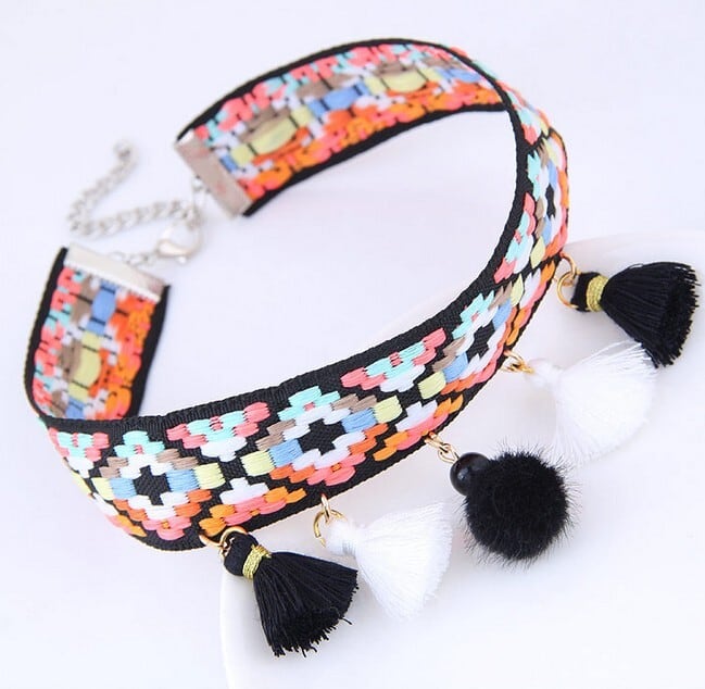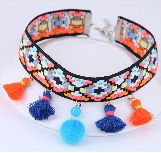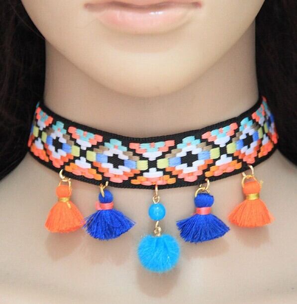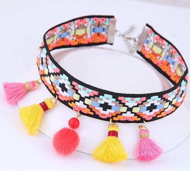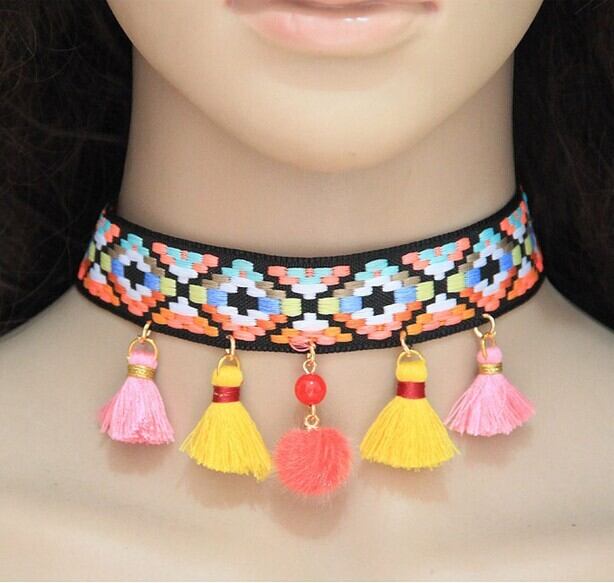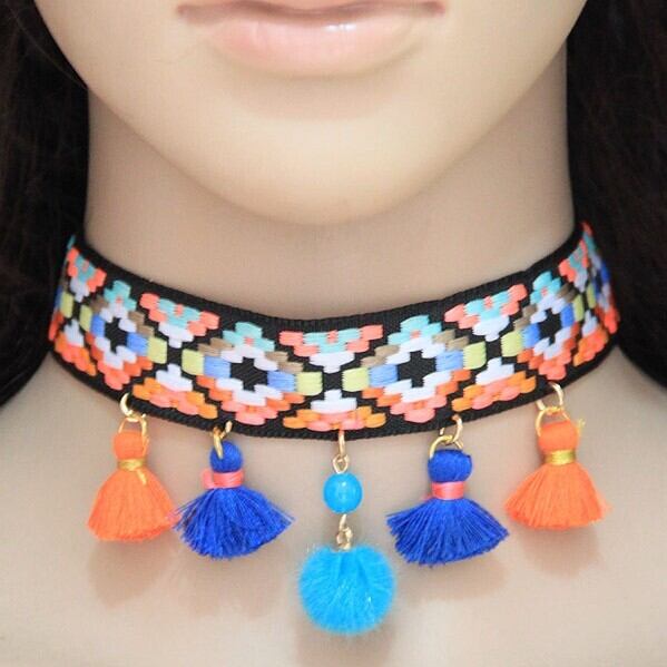 エスニック 民族ネックレス・ペンダント カラーウッドビーズ