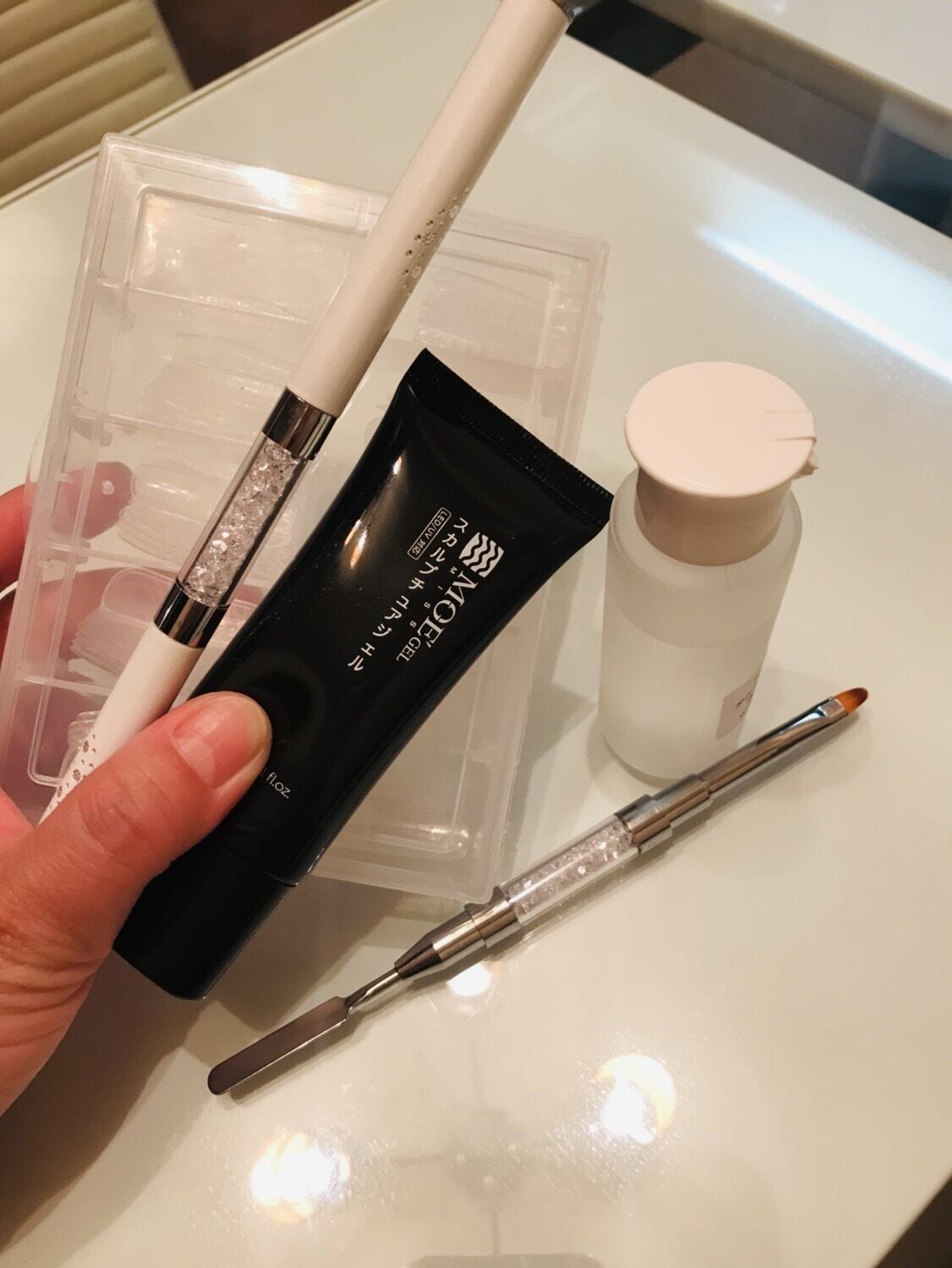専用チップフォームで簡単に長さ出しができるアクリルネイルジェルです。