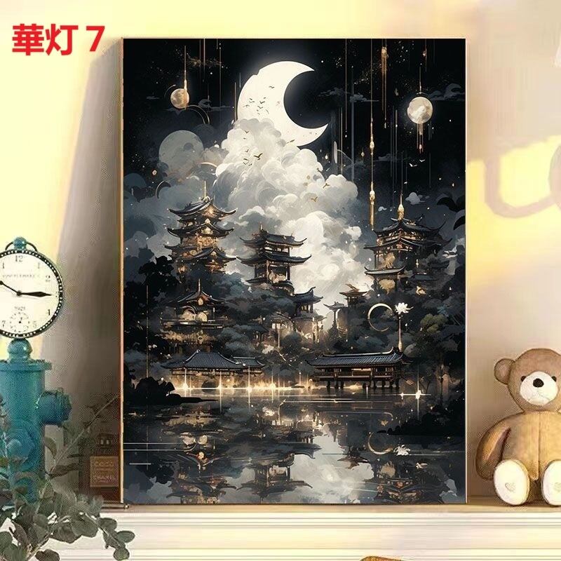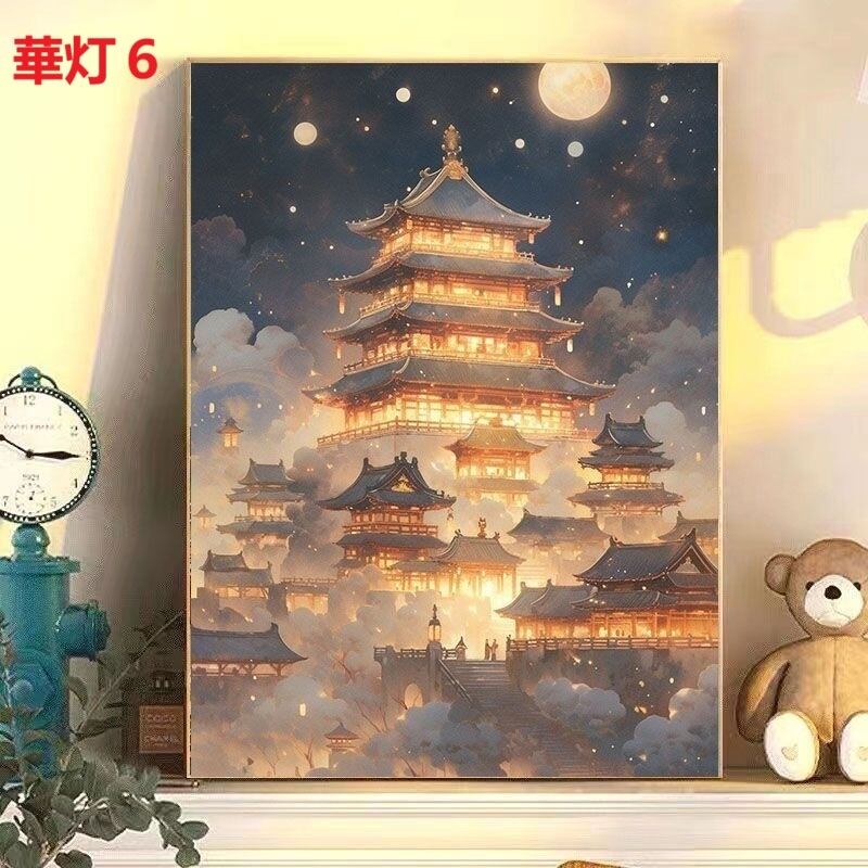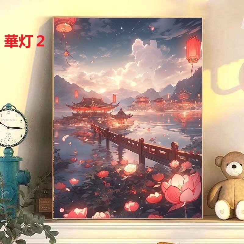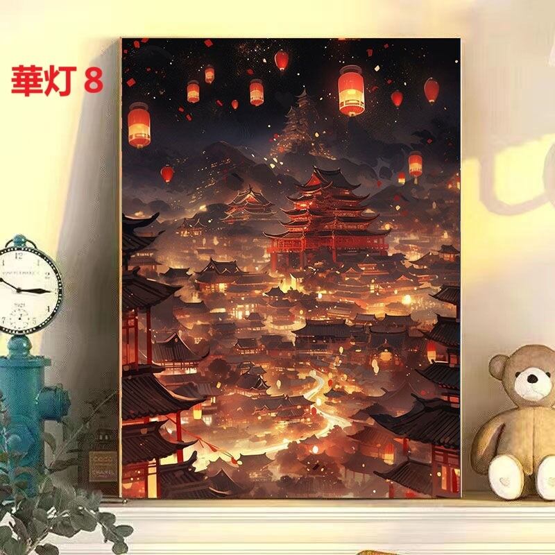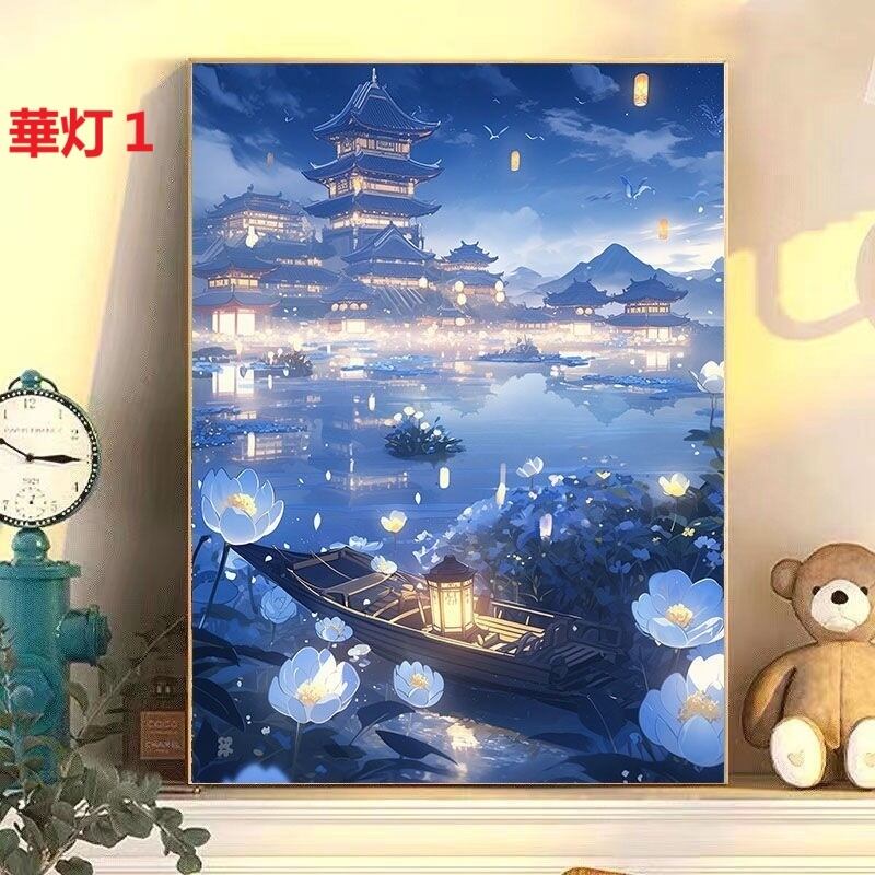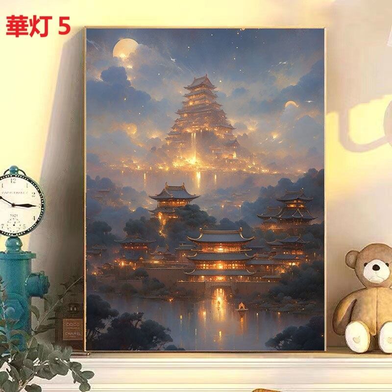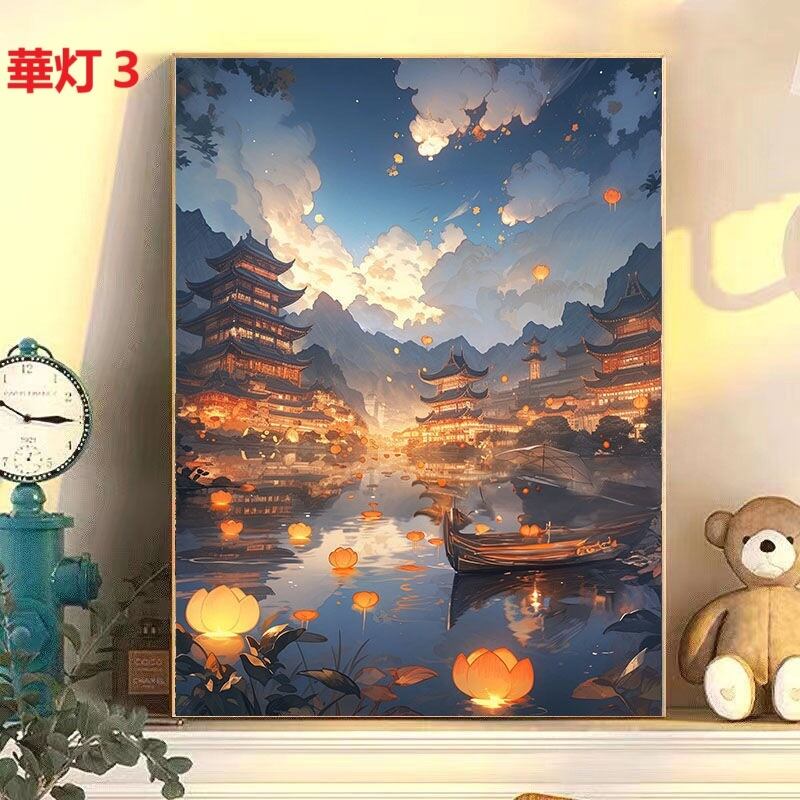 DIY 数字油絵 塗り絵 手芸キット 水海 木 景色 絵画 絵具付 数字絵 大人の塗り絵 油絵 ペイントバイナンバー ナンバーペイント 城 灯篭 自由風 シリーズ