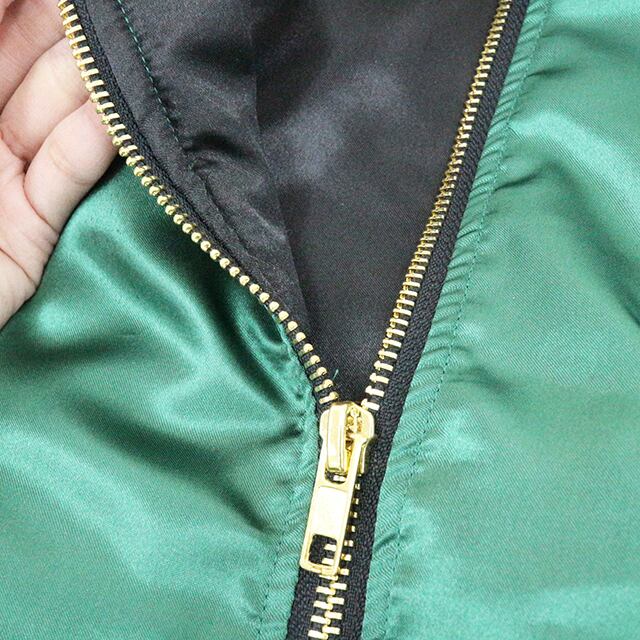 スカジャンのシンボルともいえる本格的な刺繍が前面と背面に施されており、妥協する事ない本物の風合いを再現しています。中綿が入っていない仕様のため、春や秋は羽織り感覚でラフに着こなすことが可能で冬は厚手のインナーに変更すればアウターとしても活躍。コーディネートの工夫次第で幅広いシーズンでお使い頂けます。